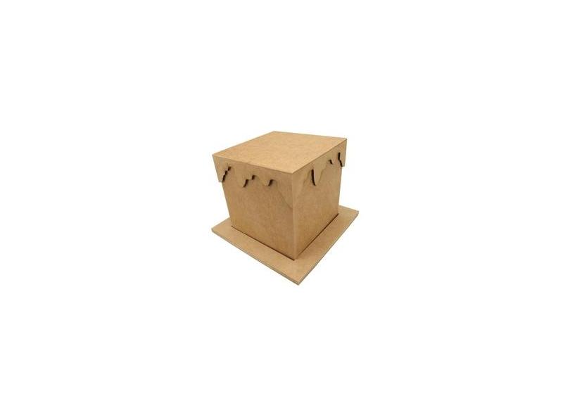 Porta Panetone Quadrado em MDF com Base e Tampa Neve 16x16x16cm Palácio da Arte
