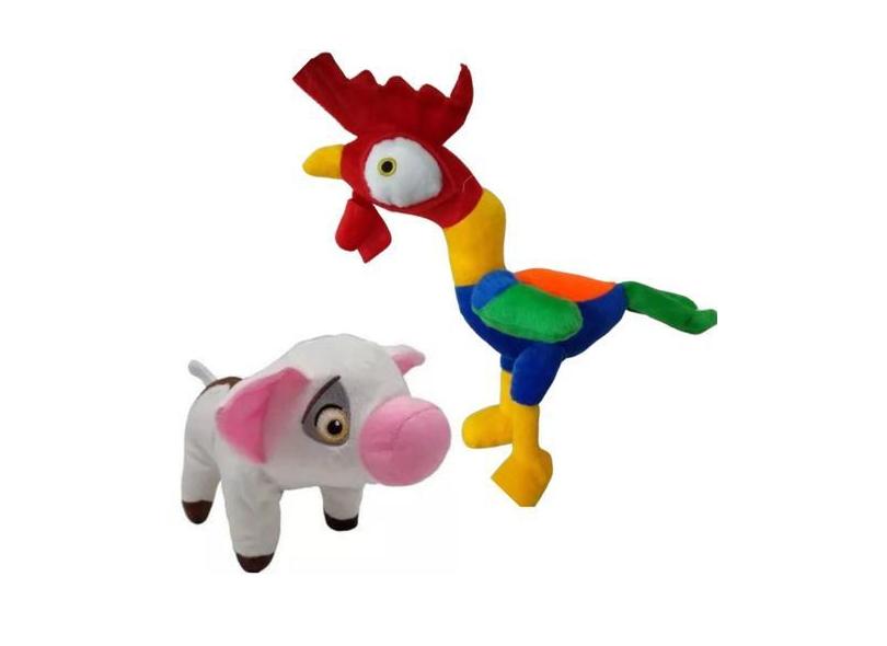 02 Brinquedos Pelucia Porquinho Pua e Galo Heihei Turma da Moana Antia