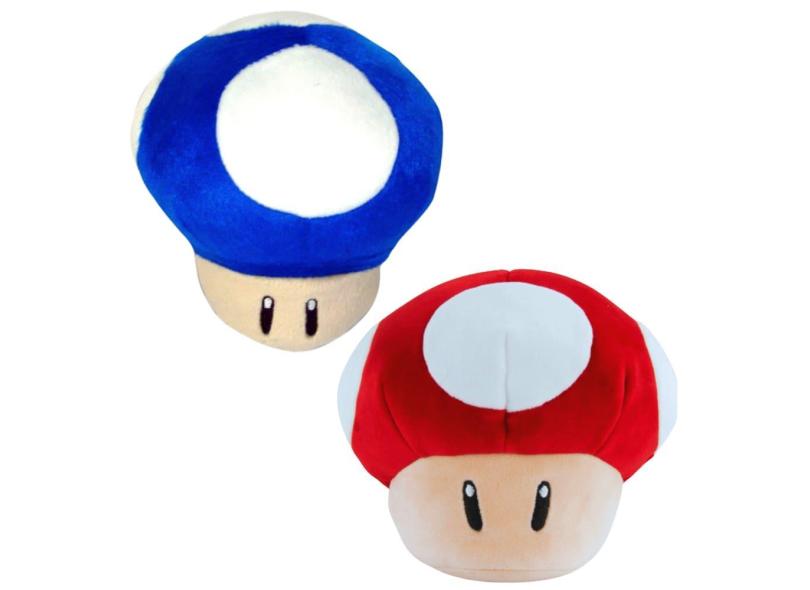 02 Pelúcias Cogumelo Vermelho e Azul 15cm da Turma do Mario
