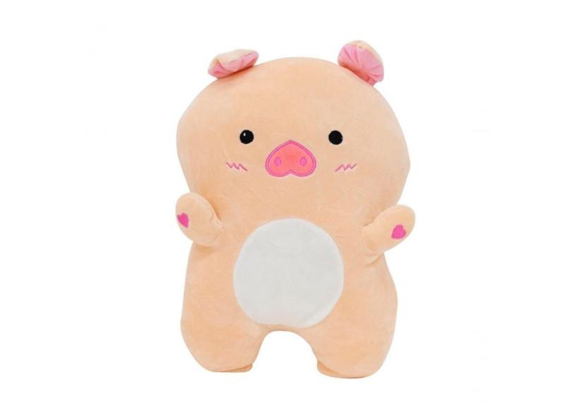 Almofada Formato Porco Bege Pelúcia 40 Cm