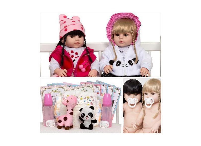 Bebe Reborn Meninas Gêmeas Girafa Panda Pelúcia Pode Banho - Cegonha R