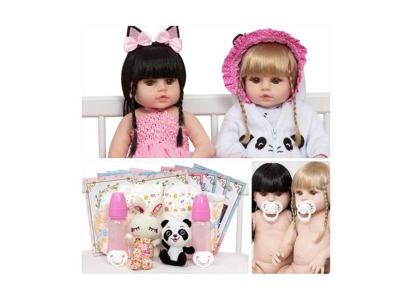 Bebes Reborn Meninas Panda Loira Bailarina Morena + Pelúcia - Cegonha