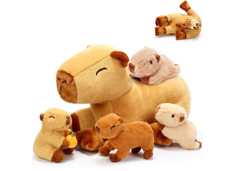 O menor preço encontrado no Brasil para Bichos de pelúcia PullCrease Capybara Mommy com 4 bebês de 40 cm atualmente é R$ 381,48.