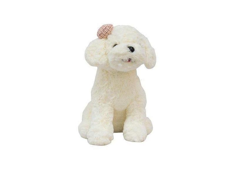 Cachorro Branco Sentado Laço 28cm - Pelúcia - Foffy