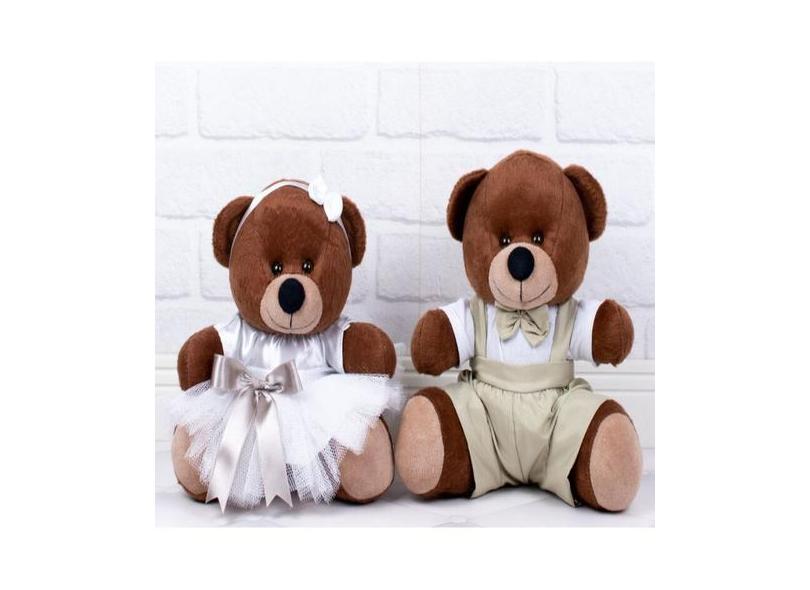 Casal de ursos de pelucia pajem caqui daminha branca caqui - CKD CONFE