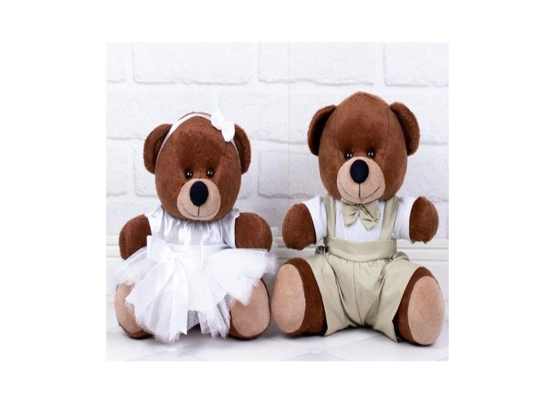 CASAL DE URSOS PAJEM CAQUI DAMINHA BRANCA PADRAO - PELUCIA 26cm - CKD