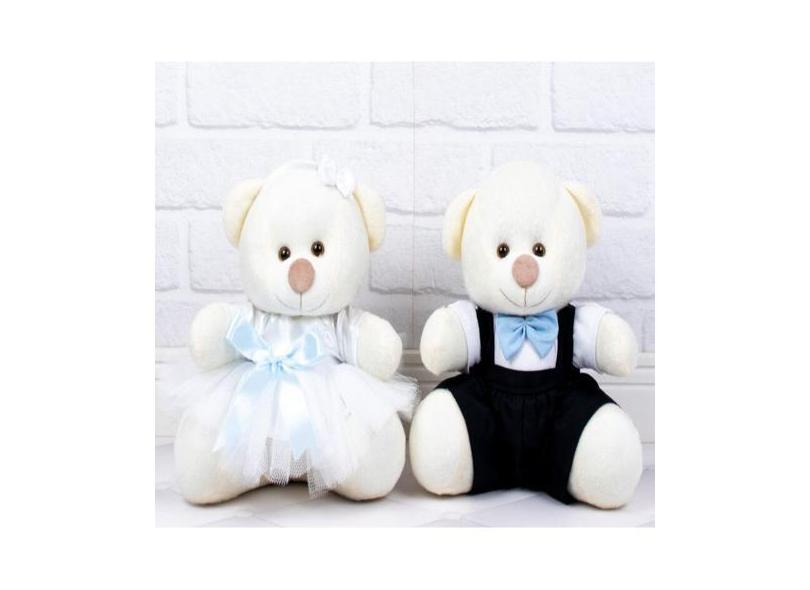 CASAL DE URSOS TEDDE 26cm PAJEM PRETO,DAMINHA BRANCA - PELUCIA PALHA.