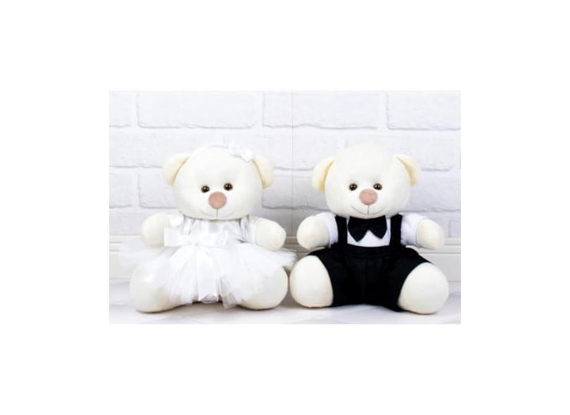 Casal Ursos Tedde Pajem Preto, Daminha Branca - Pelúcia Palha 18 cm (Pajem Preto, Daminha Branca, padrão - Pelúcia Palha)