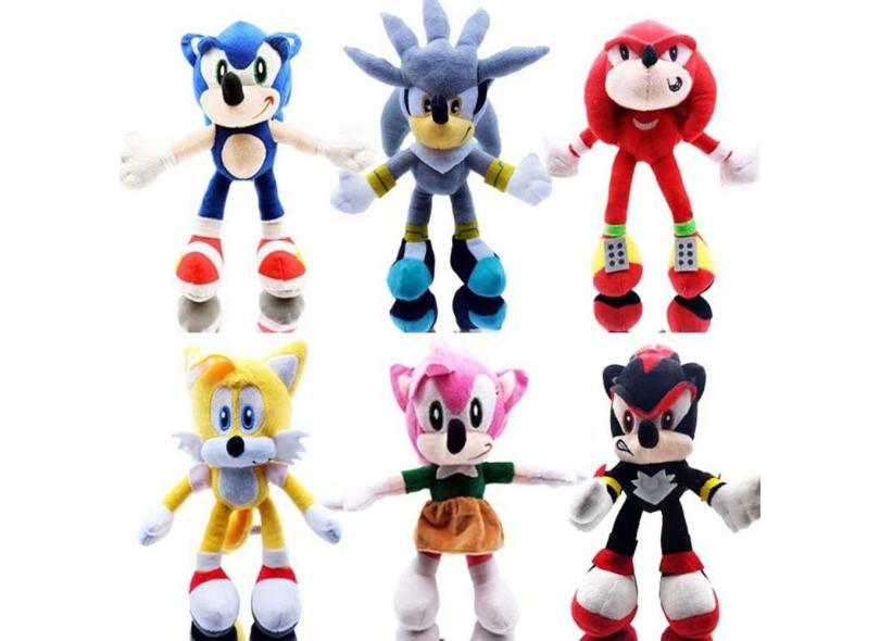 Conjunto de 6 brinquedos de pelúcia Sonic the Hedgehog de 20 cm