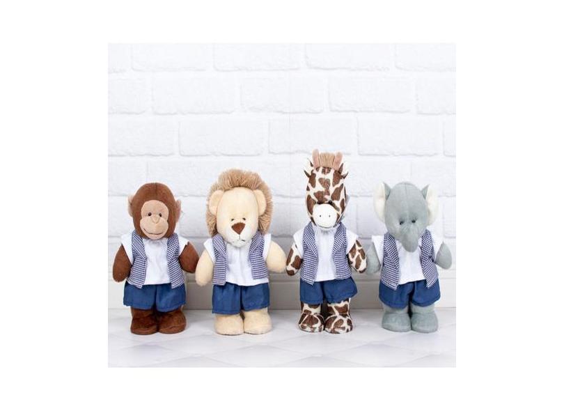 KIT PELUCIA SAFARI EM PÉ 20cm : LEÃO, ELEFANTE, MACACO, GIRAFA - CKD C