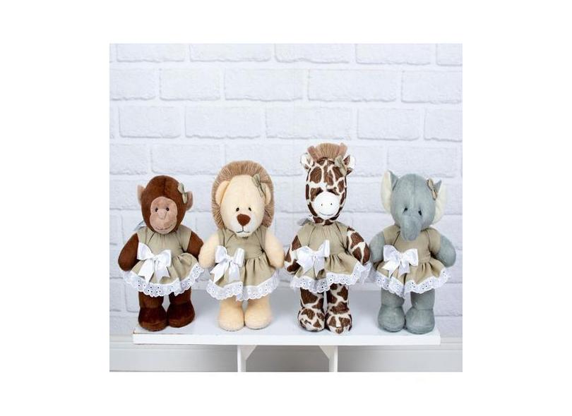 KIT SAFARI VESTIDO COM LESE PELUCIA EM PÉ 20cm - LEÃO, ELEFANTE, MACAC