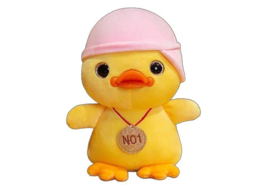 Pato De Pelúcia Amarelo Com Boiná Olhos Brilhantes 20Cm Rosa