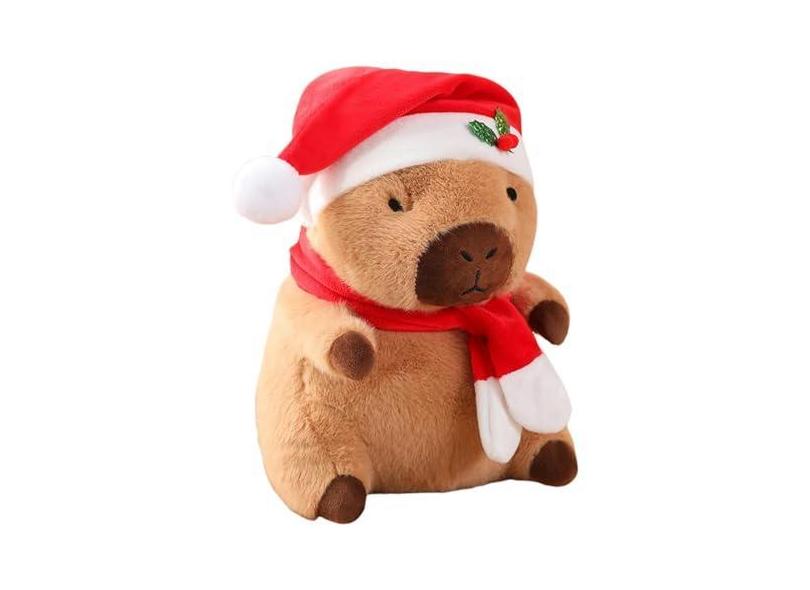 Pelúcia Capivara,Capivara Pelúcia - Almofada de travesseiro de pelúcia animal bonito chapéu de Papai Noel - Brinquedo macio da boneca do luxuoso do natal, decoração da casa dos jardins de infância, pe