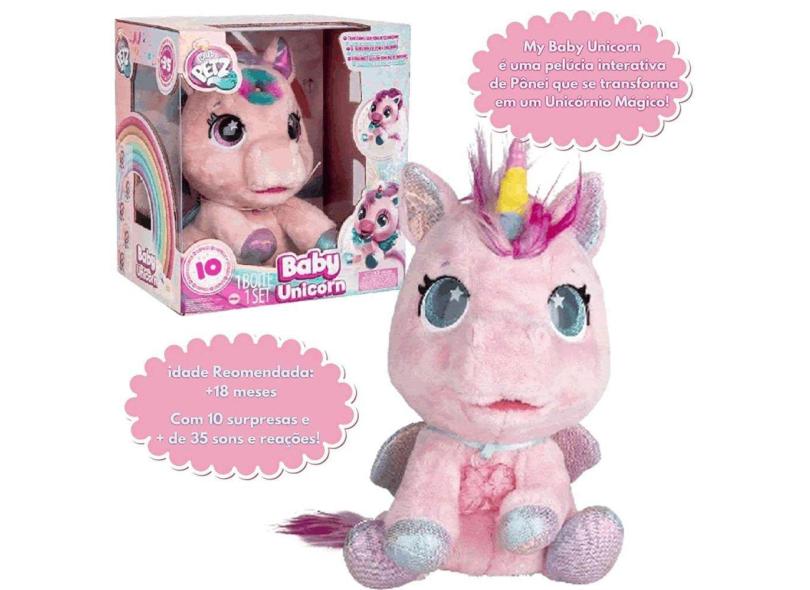 Pelúcia Interativa Meu Bebê Pônei Unicórnio Rosa com Asas