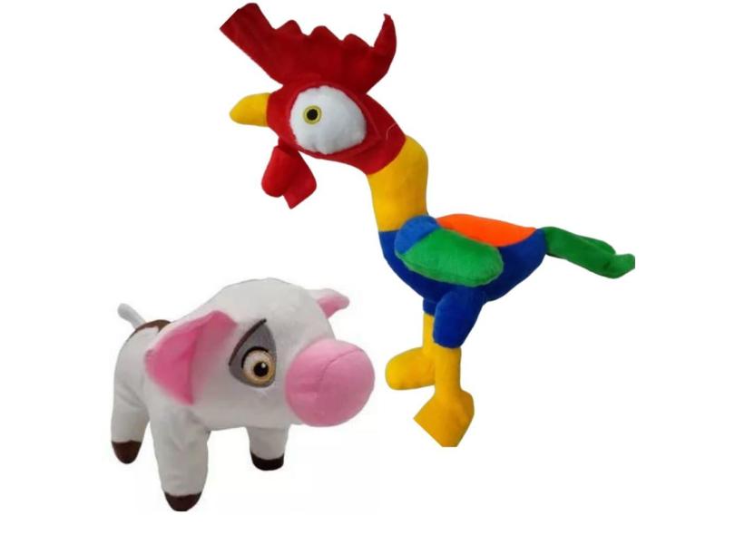 Pelúcias Porquinho Pua e Galo Heihei da turma da Moana - 02 Personagens