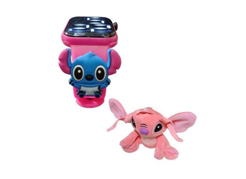 Relógio Digital Inspirado Stitch+Pelucia Infantil_Rosa - Smactudo