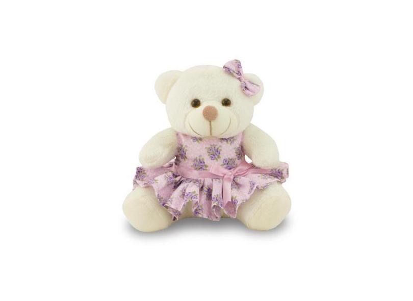 Ursinha de Pelúcia Floral 25cm Decoração Infantil - Toybrink, Baunilha