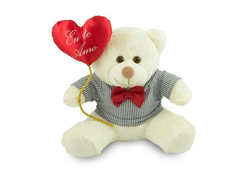 Ursinho de pelúcia com Balão 25cm Anti-alérgico - Toybrink, Baunilha
