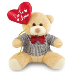 Ursinho de pelúcia com Balão 25cm Anti-alérgico - Toybrink, Caramelo