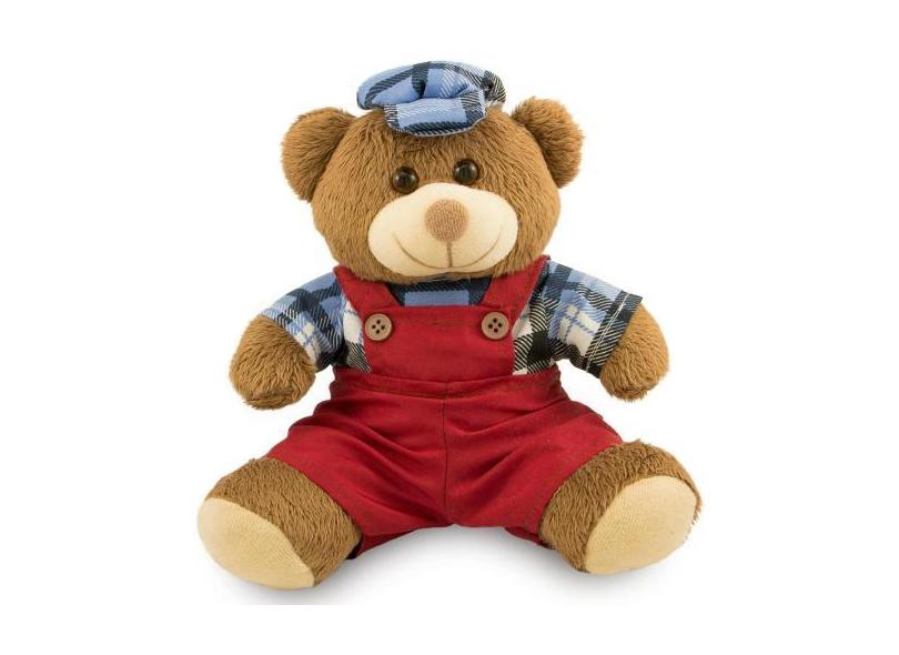 Ursinho de Pelúcia Menino com Chapéu 25cm - Toybrink, Marrom, Vermelho