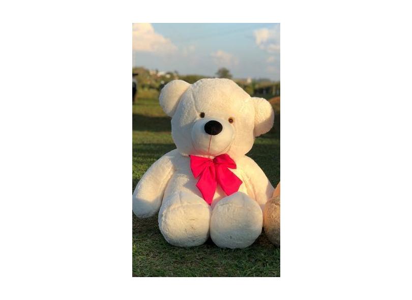 Urso Gigante Pelúcia Grande Teddy 1,10 Metro - Baunilha - Laço Pink -