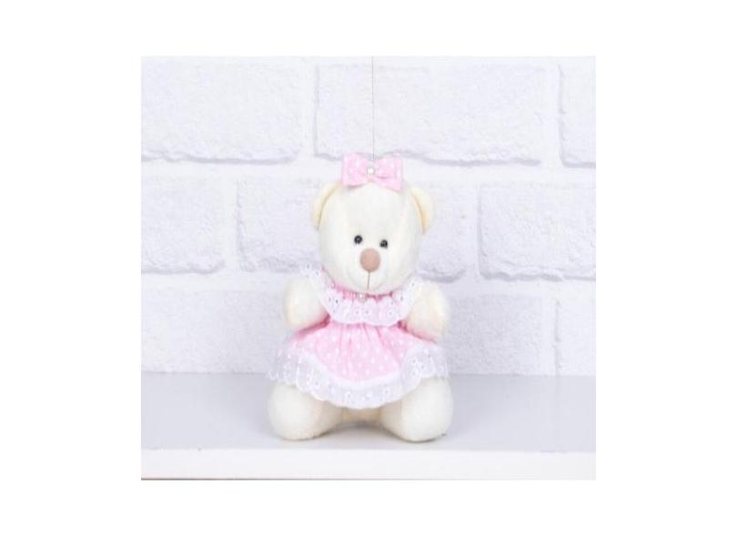URSO TEDDE 12 cm VESTIDO BABY - PELUCIA PALHA - CKD CONFECÇÕES, Poá ro
