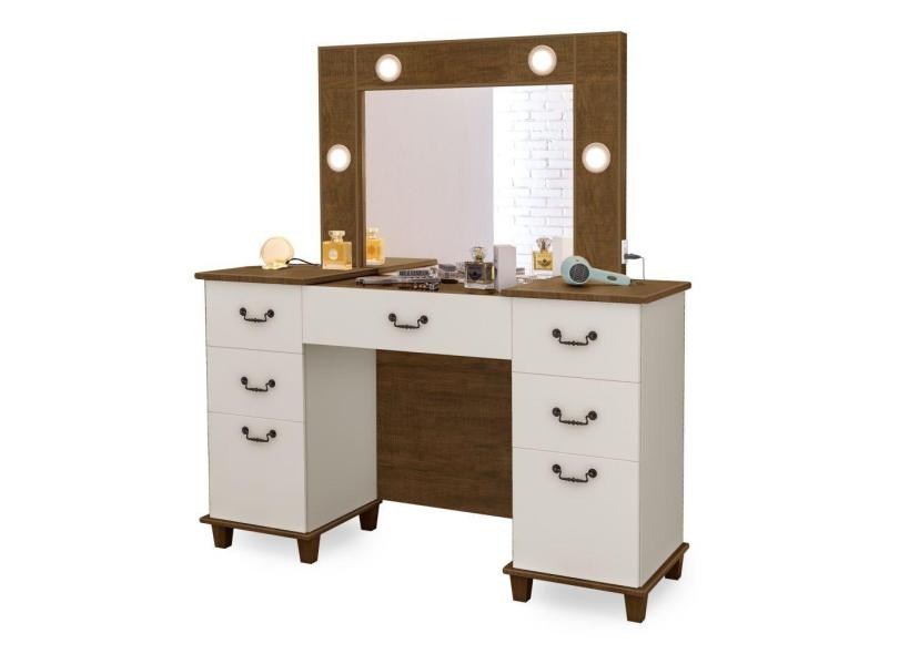 Penteadeira com Espelho e Banqueta Retrô Malbec e Off White