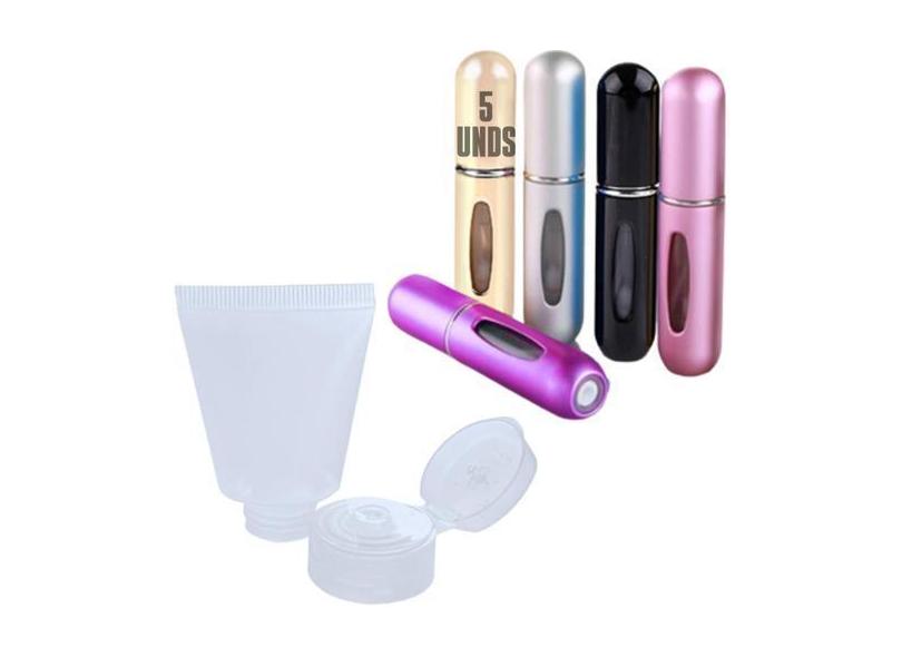Kit 10/5unds Frasco Porta Perfume 5ml + Bisnaga Plástica 30g Tampa Fli