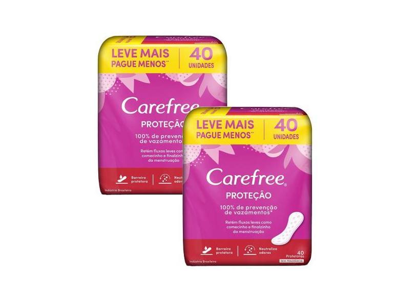 Kit 2 Protetores Diário Carefree Proteção sem Perfume 40 Unidades