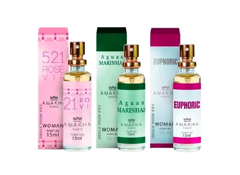 Kit 3 Perfume Feminino 521 Vip Rose Aguas Marinhas Euphoric
