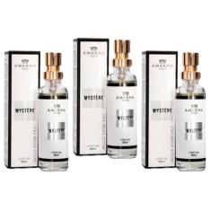 Kit 3 Perfume Mystere Feminino Amakha Paris 15ml Bolsa Bolso