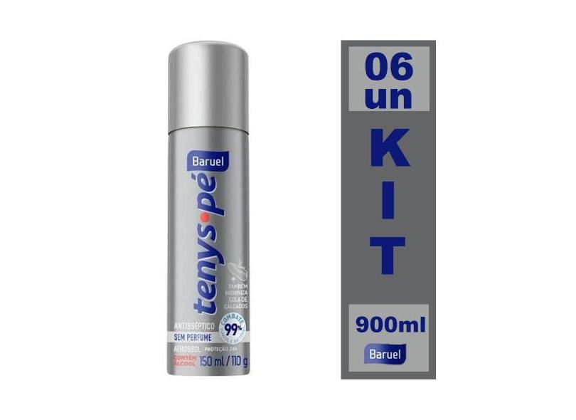 Kit 6 Antisséptico Aerossol s/ Perfume Tenys Pé Baruel 150ml