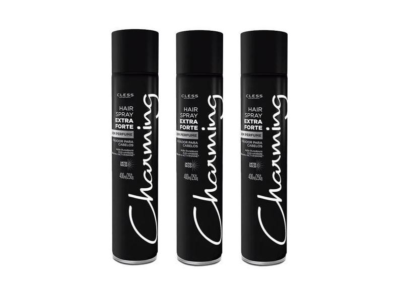 Kit Hair Spray Charming Black Extra Forte Sem Perfume 400ml - 3 Unidad