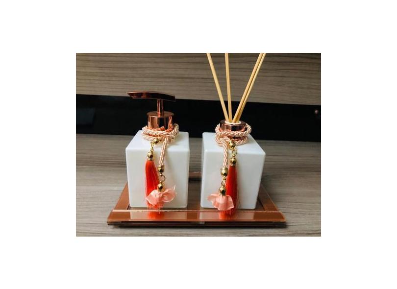 Kit Lavabo Banheiro Branco Rose Cubo Perfume Cheirinho Aroma - Ateliê