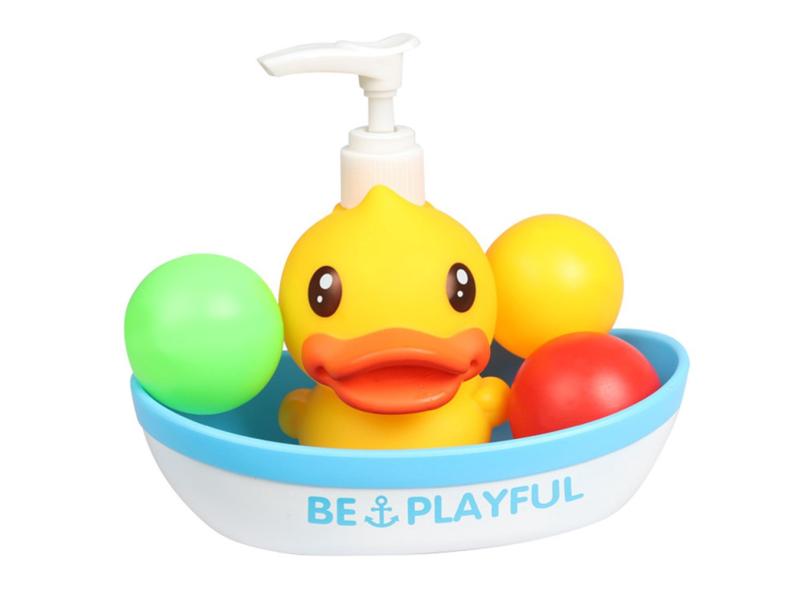 Bebê Toy Bath Float Barco Com bomba Dispenser frasco Pato Piscina Tub Toy