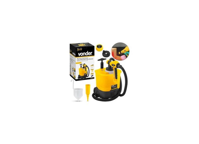 Pistola Pintura E Pulverizador Elétrico Vonder Pev750 750w 127v Hvlp Amarelo E Preto Com Rodas