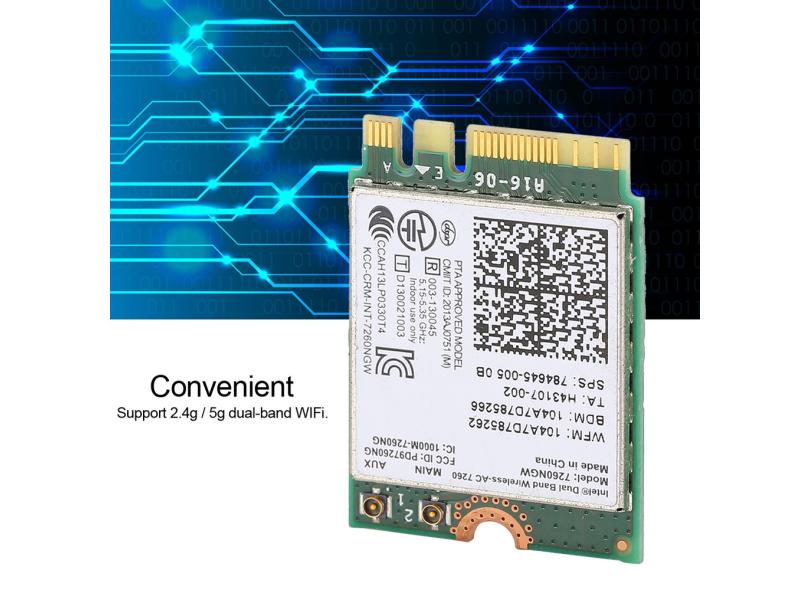 Placa WiFi sem fio, Placa adaptadora Bluetooth WiFi Placa conversora de rede interna ngff / M2 867Mbps 2.4G / 5G Dual Band, Intel 7260NGW ac, compatív