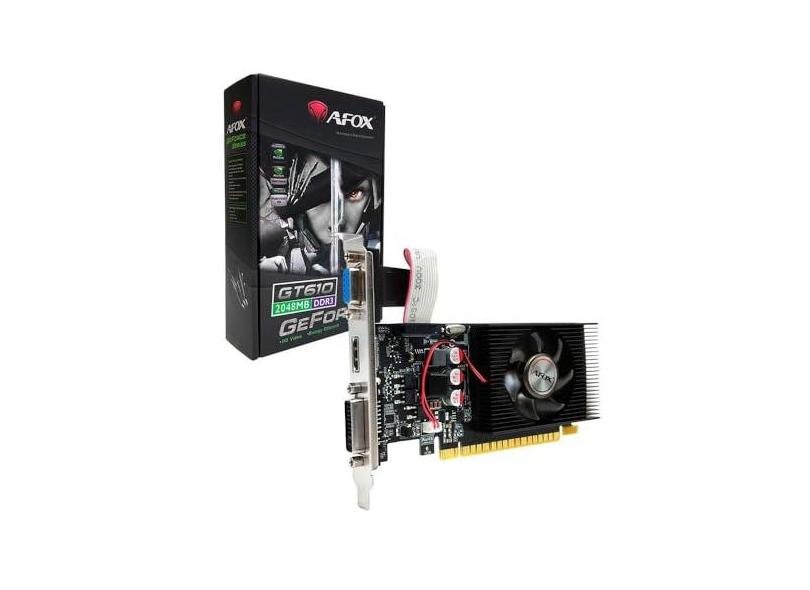 PLACA DE VIDEO AFOX GEFORCE GT610 2GB DDR3 64 BITS LP - HDMI - DVI - VGA - AF610-2048D3L7-V6