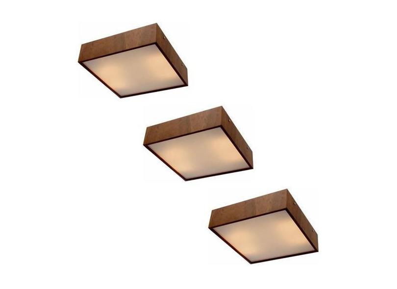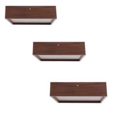 Kit 3 Plafons Luminária Quadrado Madeira 30Cm