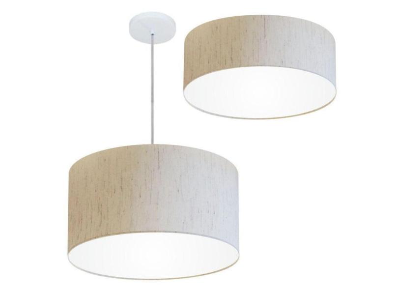 Kit Plafon Md-3014 Pendente Md-4049 50Cm Linho Bege Bivolt