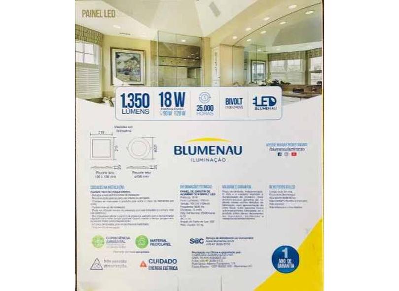 Painel LED Slim Embutir Quadrado 18w 6.500k Bivolt Blumenau