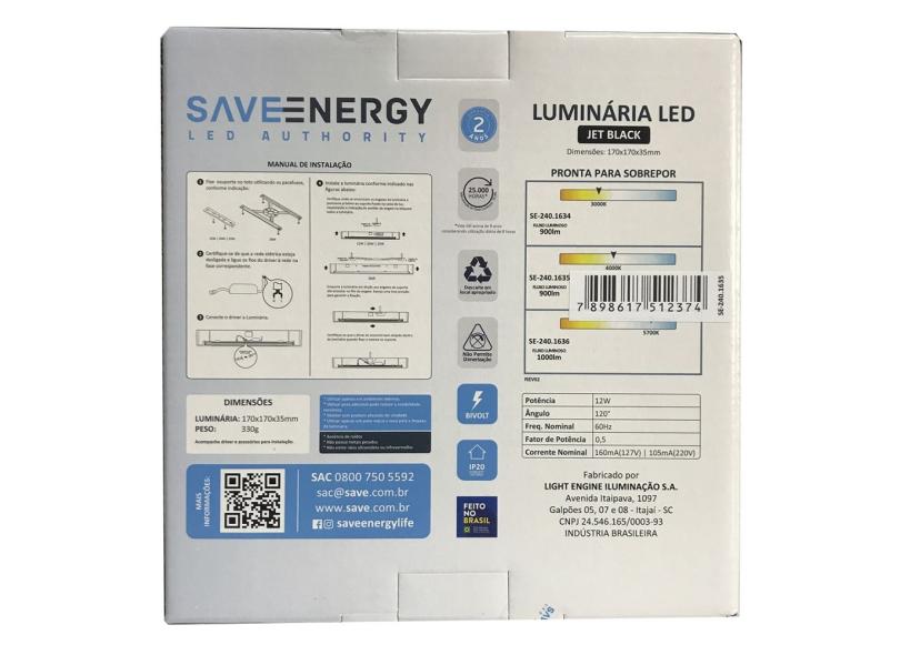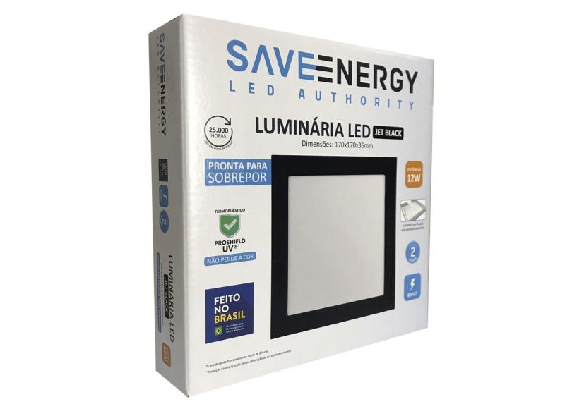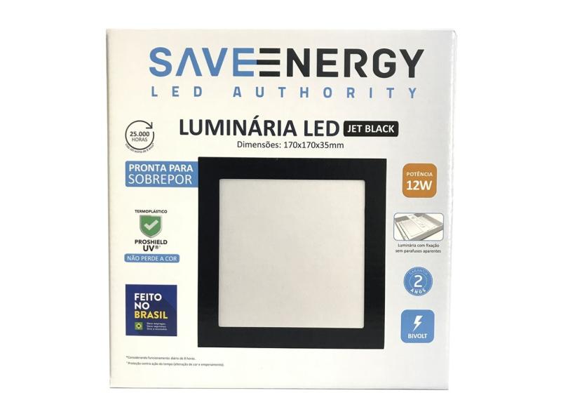 Painel Plafon Led Sobrepor 17X17cm 12W 4000K Bivolt Preto - Save Energy - SE-240.1635