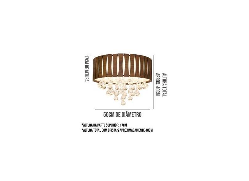 Plafon de Cristal e Madeira redondo 50cm Imbuia escura