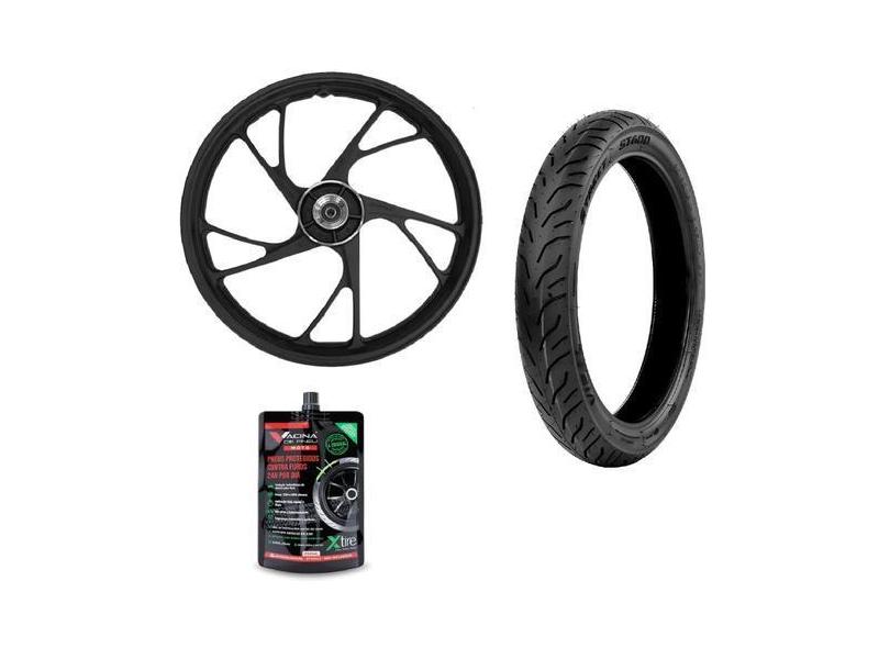 Kit roda pé de galinha shiver disco dianteira + 1 pneu st600 80/100-18
