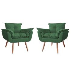 Combo 02 Poltronas Decorativa Opalla Pés Palito Suede Verde - ds Estofados