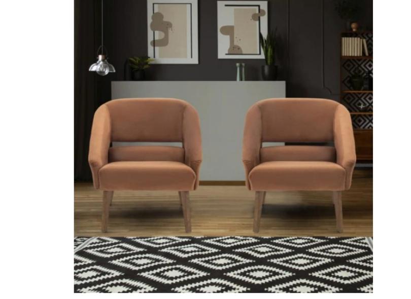 Conjunto 2 Poltronas De Aproximação Herval Nice, Veludo Molhado Laranja Terracota