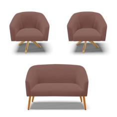 Kit 01 Namoradeira 02 Lugares e 02 Poltronas Giratória Stella Linho Claro A05 Base Madeira MA30 - D'Rossi