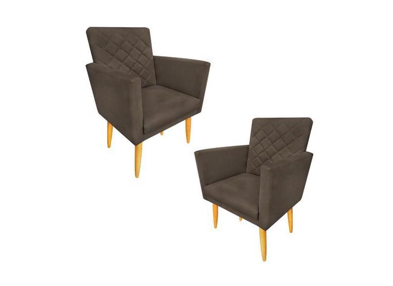 Kit 02 Poltrona Decorativa Maitê com Matelassê Pés Palito Suede Marrom