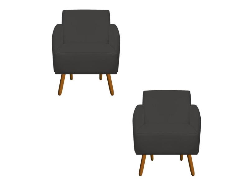 Kit 02 Poltrona Laura Decoração Pé Palito Sofá Sala Estar Escritório Recepção Clinica D'Classe Decor Suede Grafite