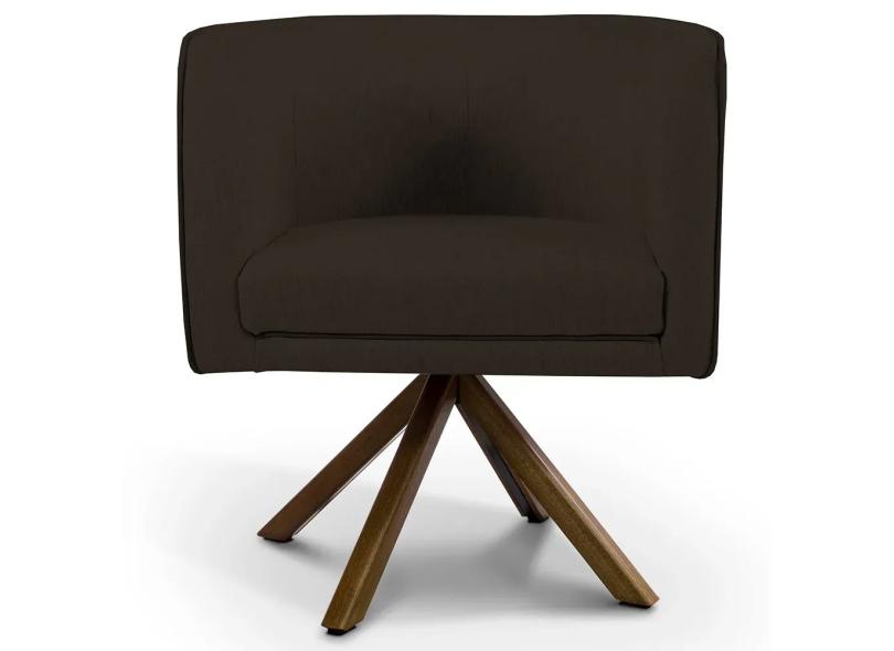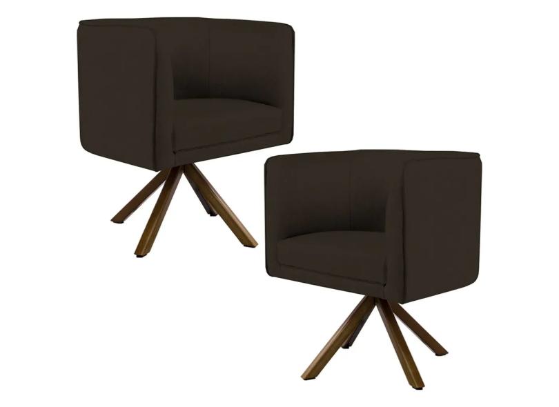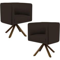 Kit 02 Poltronas Decorativa Base Giratória de Madeira Betina D02 Corano Marrom C-34 - Lyam Decor